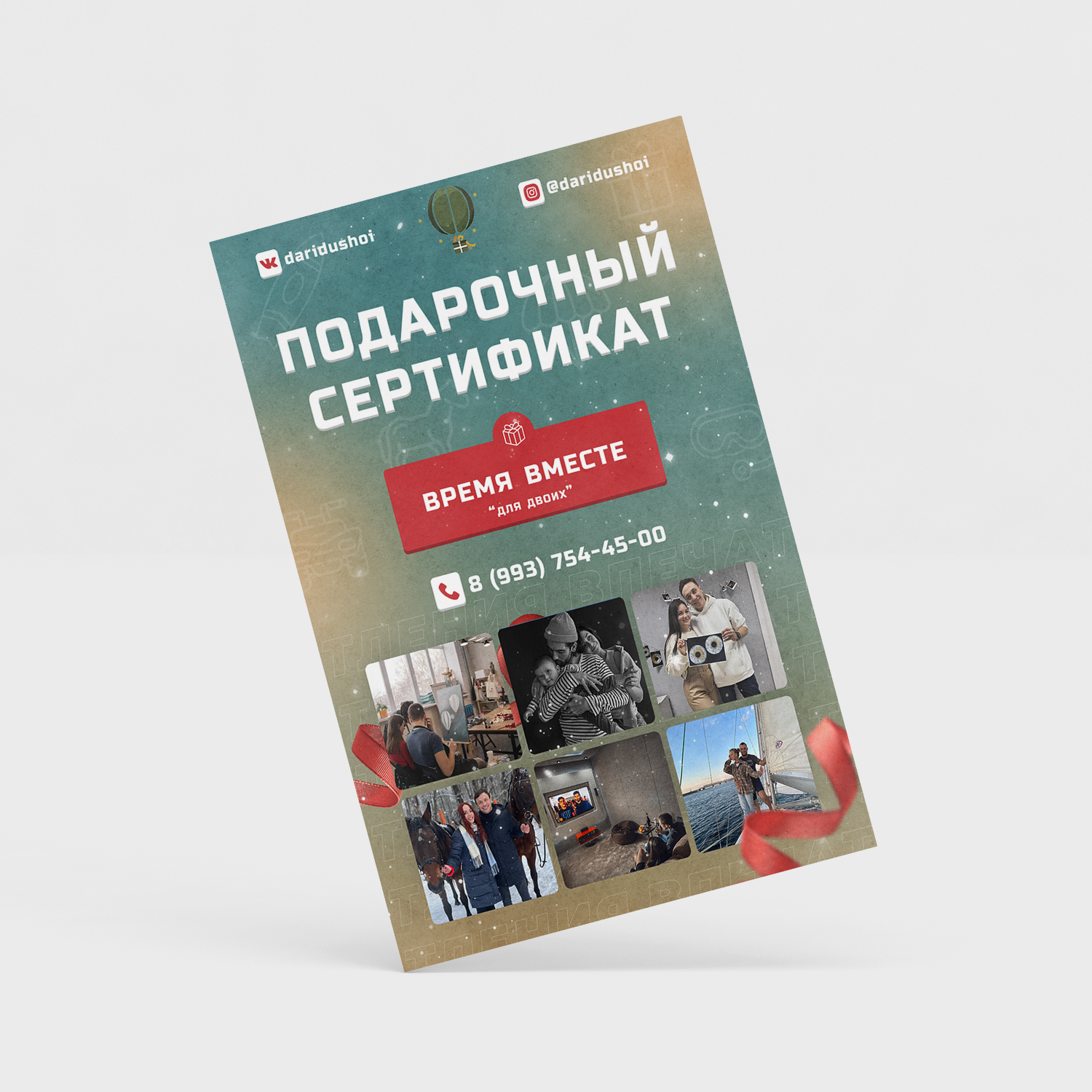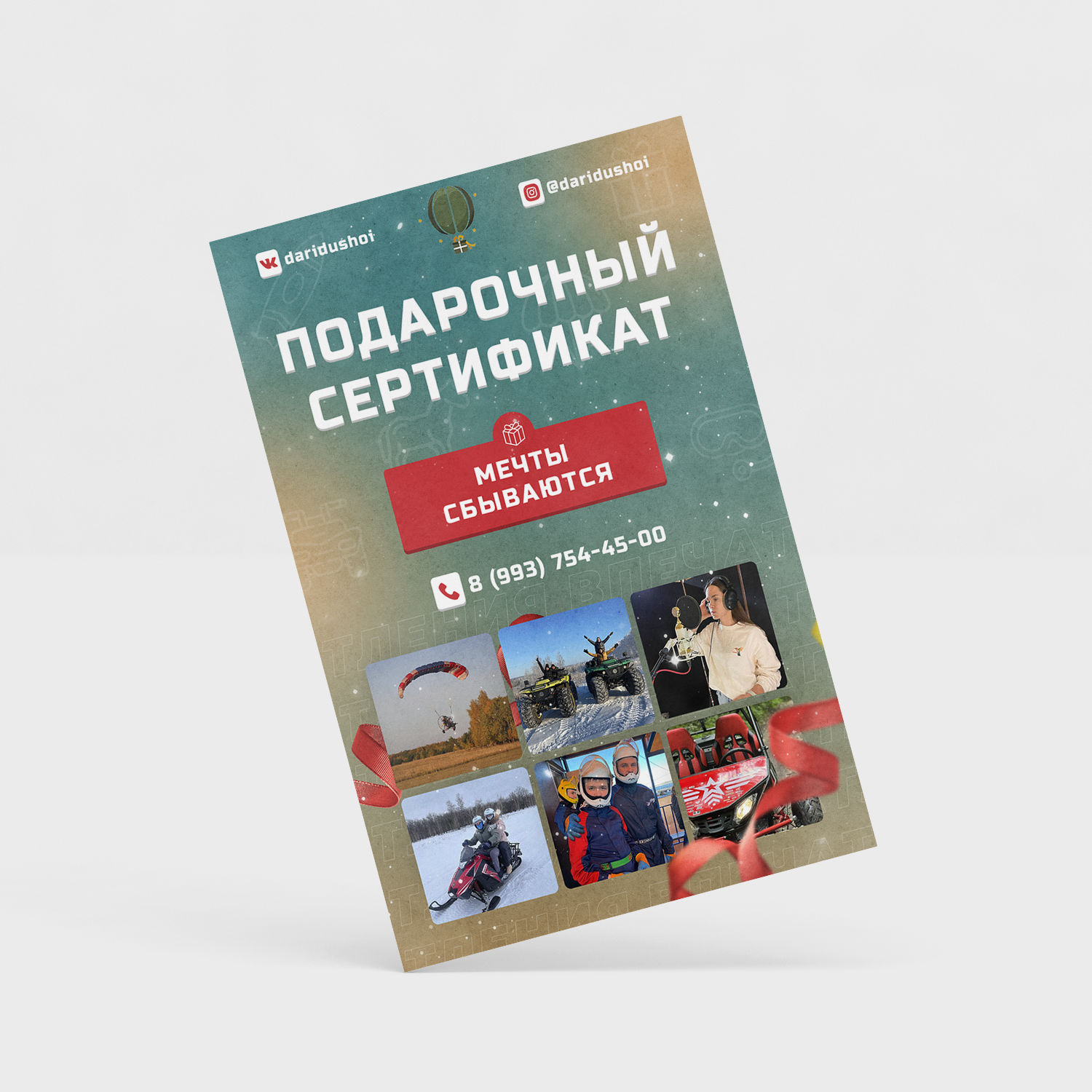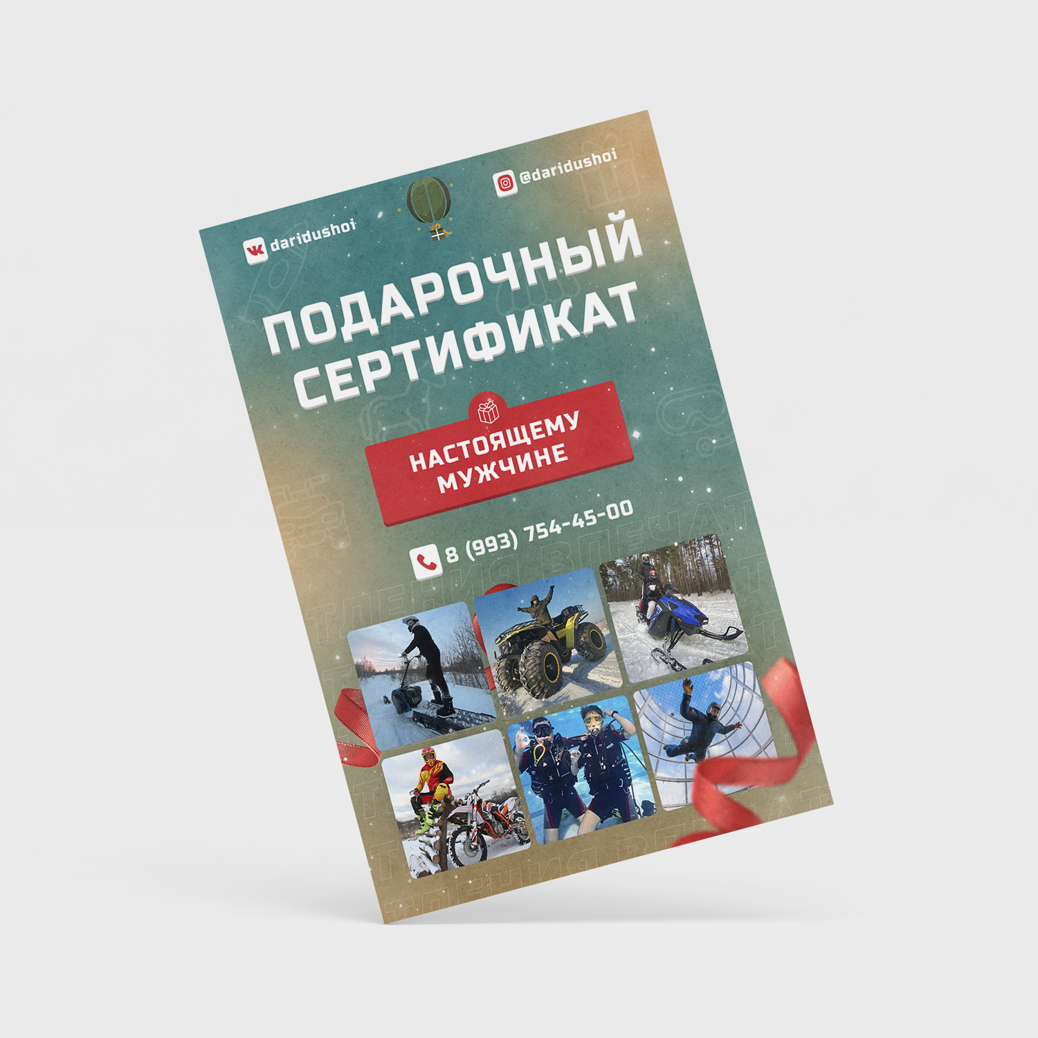 Лучший подарок - это Эмоции. Выберите впечатление, которое хотите подарить и мы оформим его в подарочный сертификат!