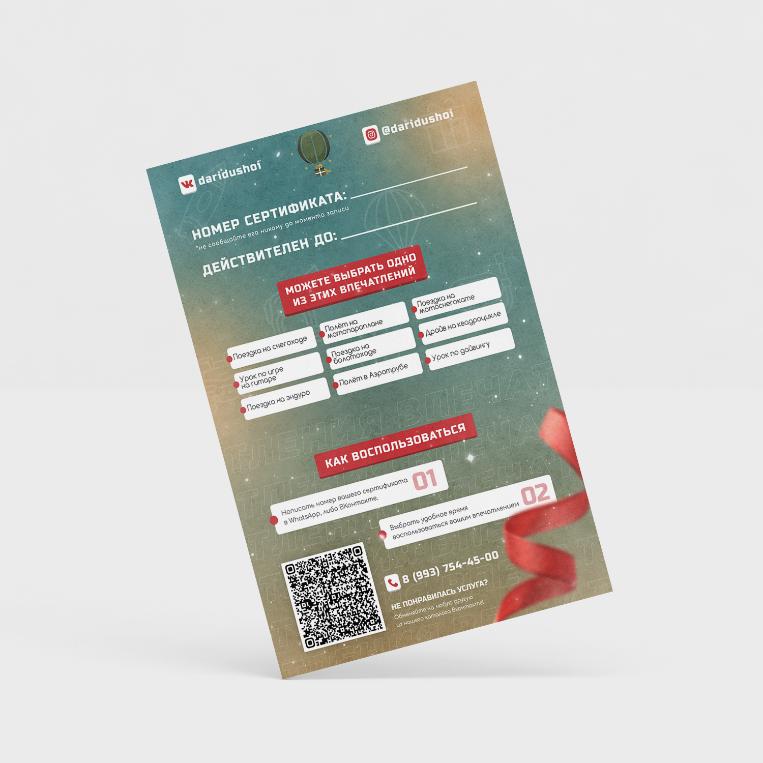 Сертификат с набором впечатлений